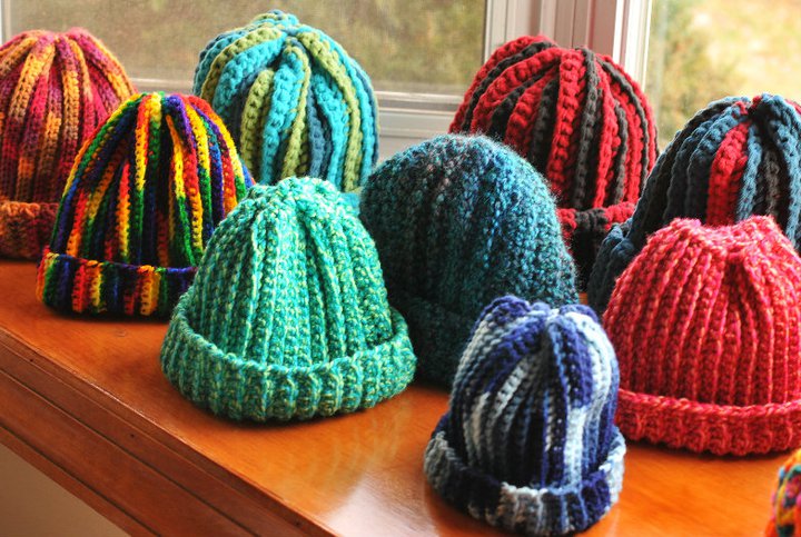 These were from a Hats Blitz that I did a couple of years ago. I bought sample skeins of yarn to try it out, and making hats were the perfect short project for trying out yarn. And this is what came out of it.