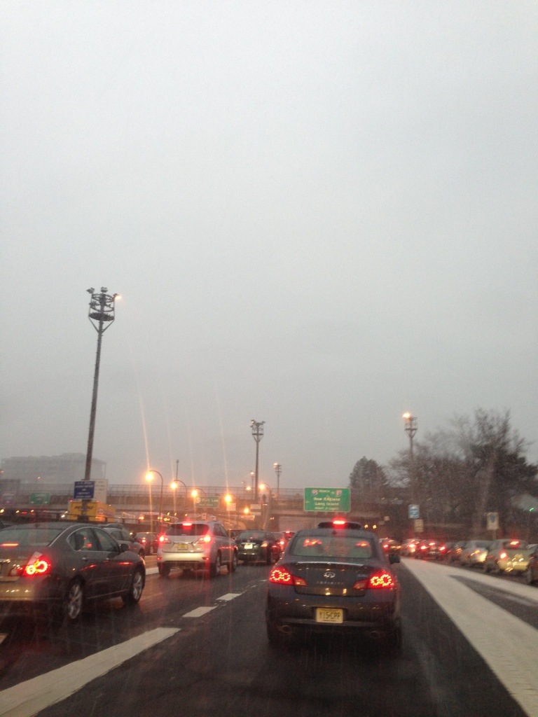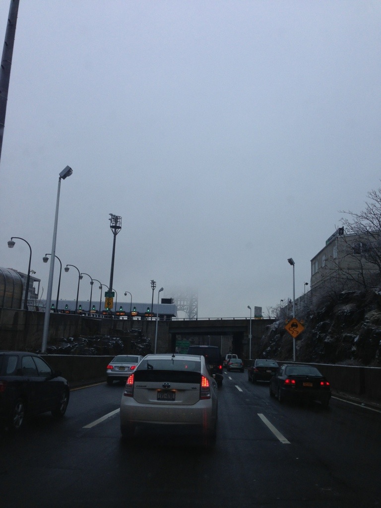 And this is what it looked like today … the snow, ice, sleet was starting to come down, and you couldn’t see the bridge structure at all …