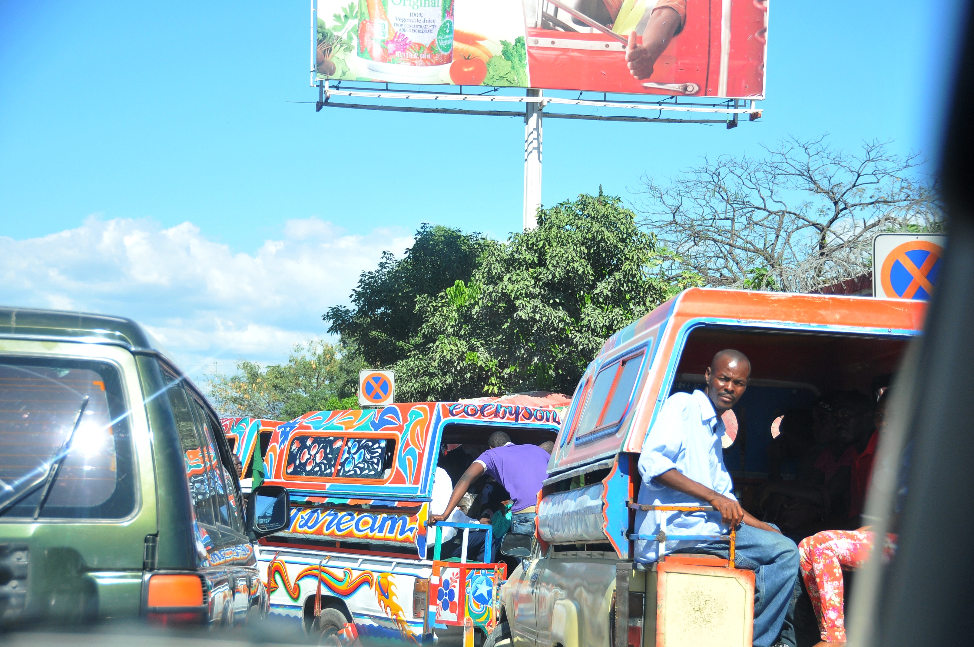 Now, let’s talk about blocked intersections. First of all, there’s only three traffic lights in the entire country of Haiti, as Justin likes to tell everybody. And we discovered another traffic light, when we were diverted from the main route. So now there’s four.
