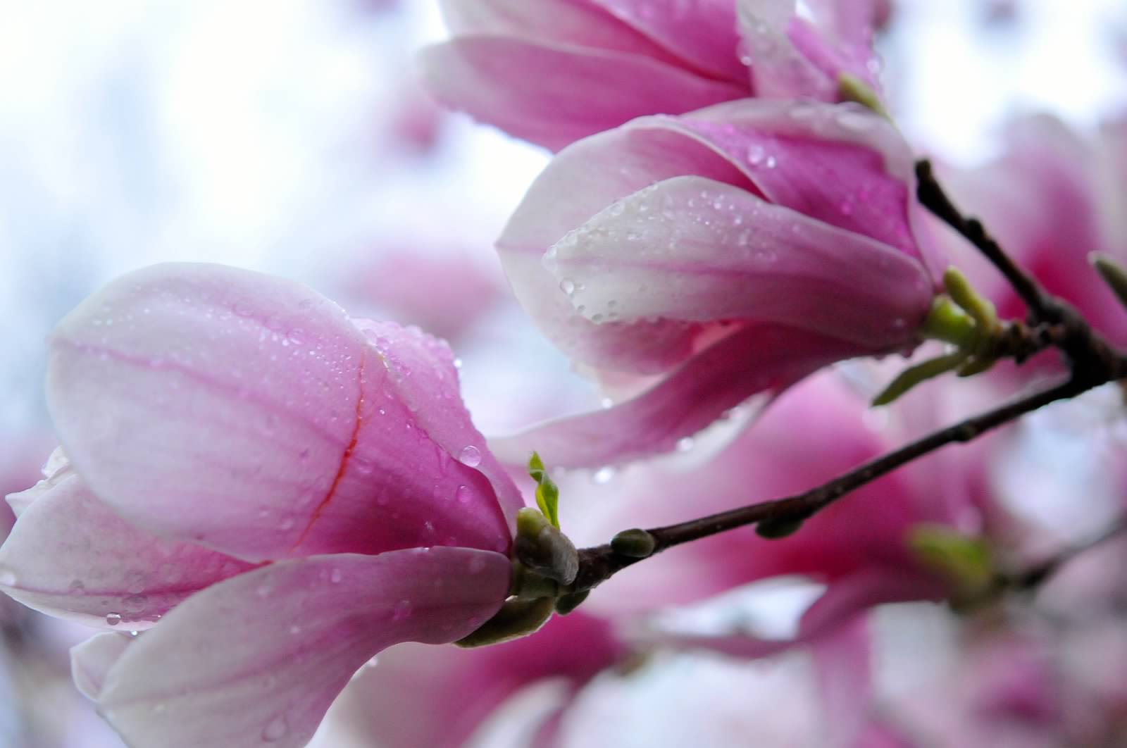 Around here, magnolias are the first to bloom. I always love that one day when suddenly there is pink where everything had been brown.