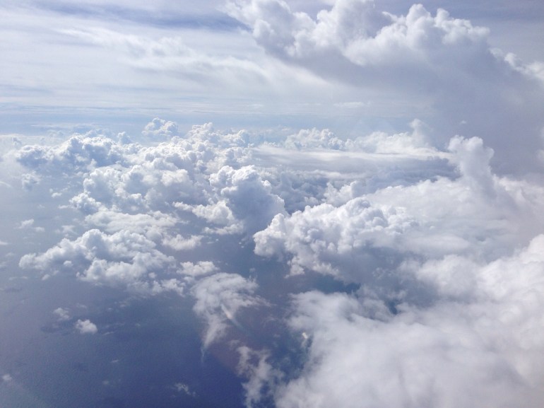 On the flight to Punta Cana, Dominican Republic a couple of weeks ago, we were suddenly flying into big clouds. And they were huge.