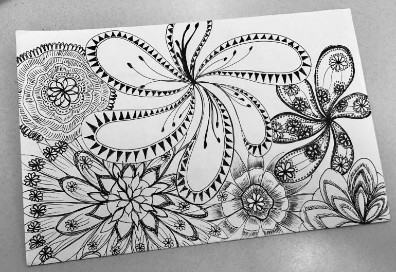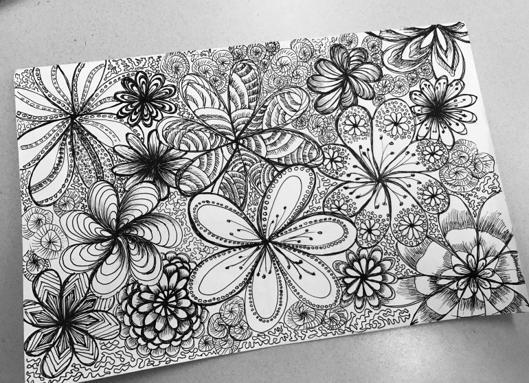 I’ve always wanted to just fill a canvas with doodles and drawings, of flowers or anything that might resemble a drawing, but none has turned out the way what I had in mind. Advice from the forums – and which I had also suspected was my problem – was to slow down, take your time.
